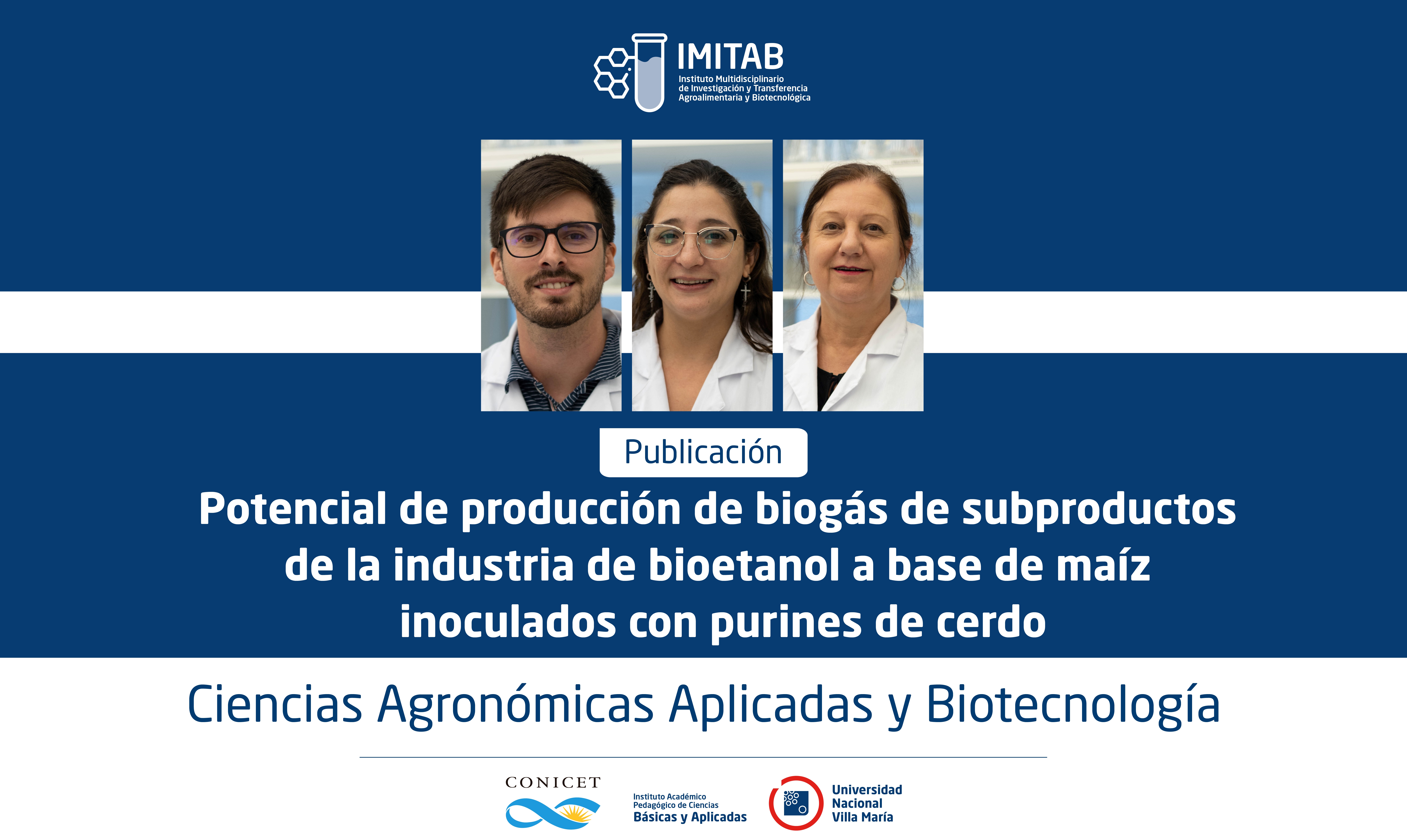 Recientemente, integrantes del grupo de Revalorización Energética de Residuos Orgánicos, en colaboración con investigadores del Instituto de Investigaciones en Tecnologías Energéticas y Materiales Avanzados (IITEMA) de la Universidad Nacional de Río Cuarto, publicaron un nuevo artículo científico titulado “Potencial de producción de biogás de subproductos de la industria de bioetanol a base de maíz inoculados con purines de cerdo” en la revista Ciencias Agronómicas Aplicadas y Biotecnología, la cual recopila trabajos completos presentados en el Congreso Internacional SOMUCAAB del año 2024.